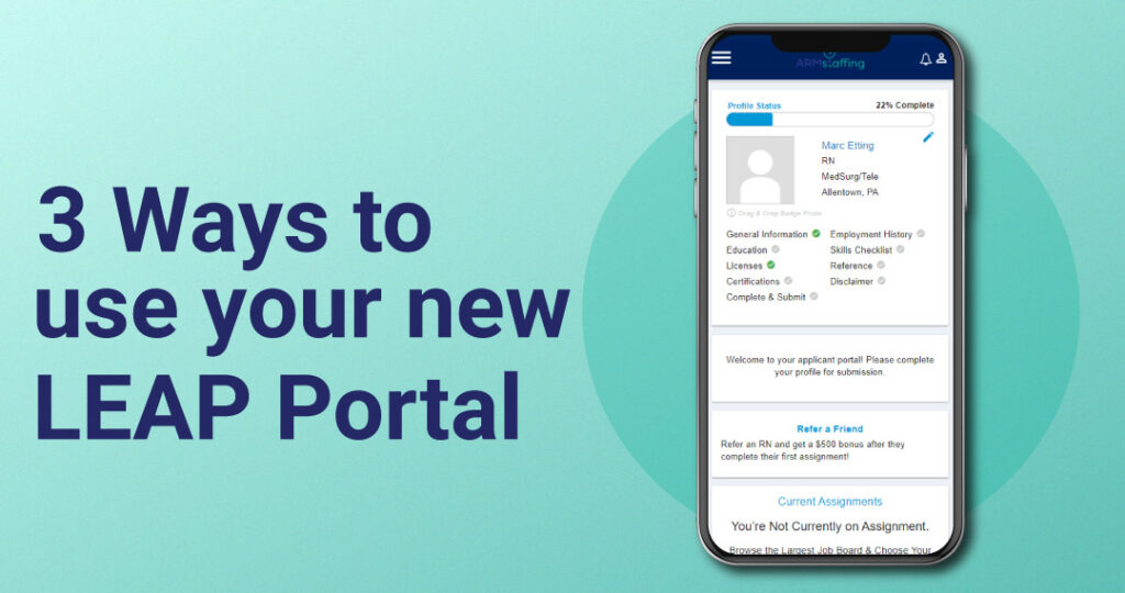 At ARMStaffing, we’re always looking to upgrade and improve our nurses’ processes to become travel nurses. Recently, we’ve updated our systems, giving you access to the new LEAP portal. Your Labor Edge Applicant Portal or “LEAP” portal is your new dashboard that stores all your information and documents in one place. This dashboard can be easily…